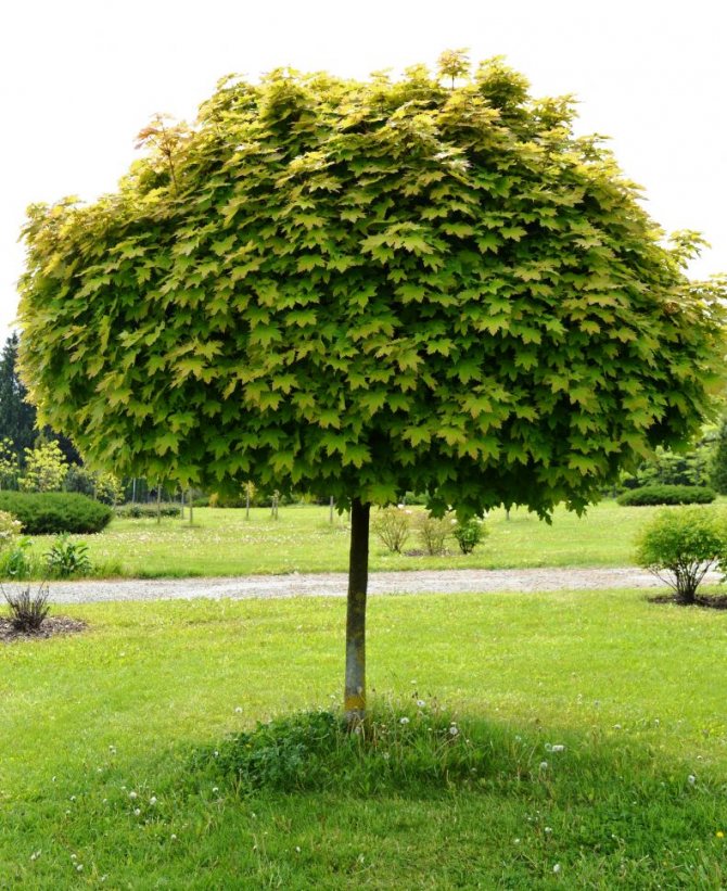 Клён Остролистный не требует особого ухода, но для лучшего роста рекомендуется регулярный полив в засушливые периоды и мульчирование приствольного круга для сохранения влаги. В первые годы после посадки важно следить за формированием кроны и при необходимости проводить обрезку.