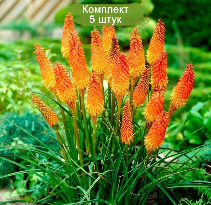 Наши саженцы выращены с заботой и вниманием, чтобы обеспечить вам здоровые и крепкие растения. В комплекте вы получите 5 саженцев, готовых к высадке. Книфофия предпочитает солнечные места и хорошо дренированные почвы, устойчива к засухе и морозам, что делает её идеальным выбором для различных климатических условий.